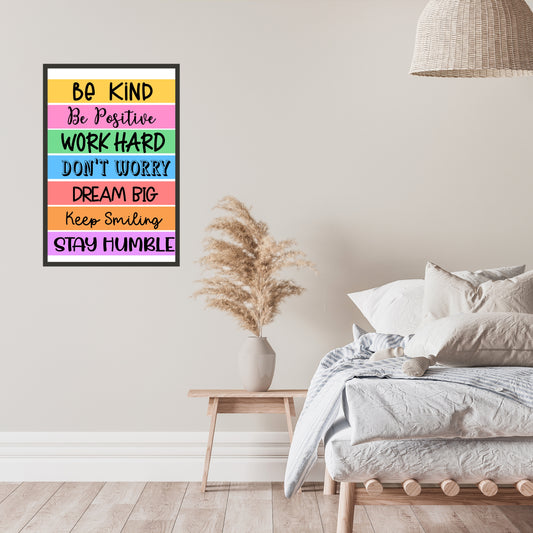 Be Kind,Be Positive,Work Hard,Dont Worry, Dream Big, Keep Smiling, Stay Humble Wall Art