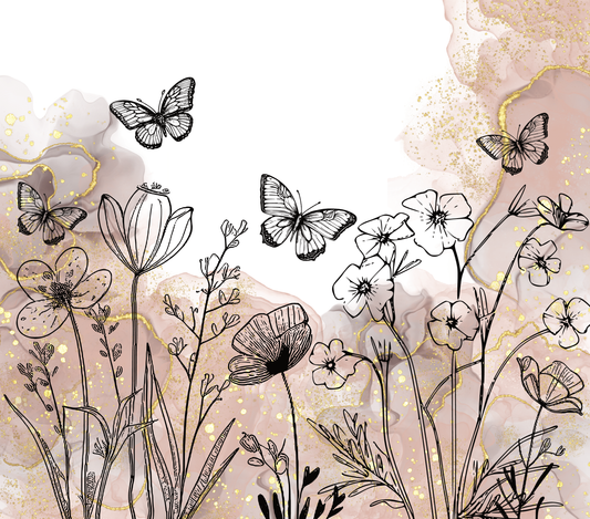 Boho Line Art Butterfly with Flower Sipper Bottle