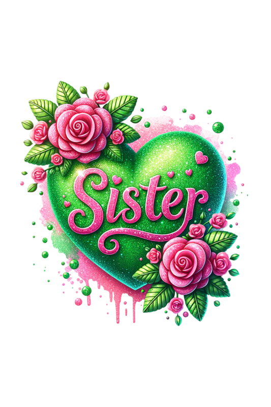 Sister Green Heart and Pink Roses- Tote Bags with Zipper
