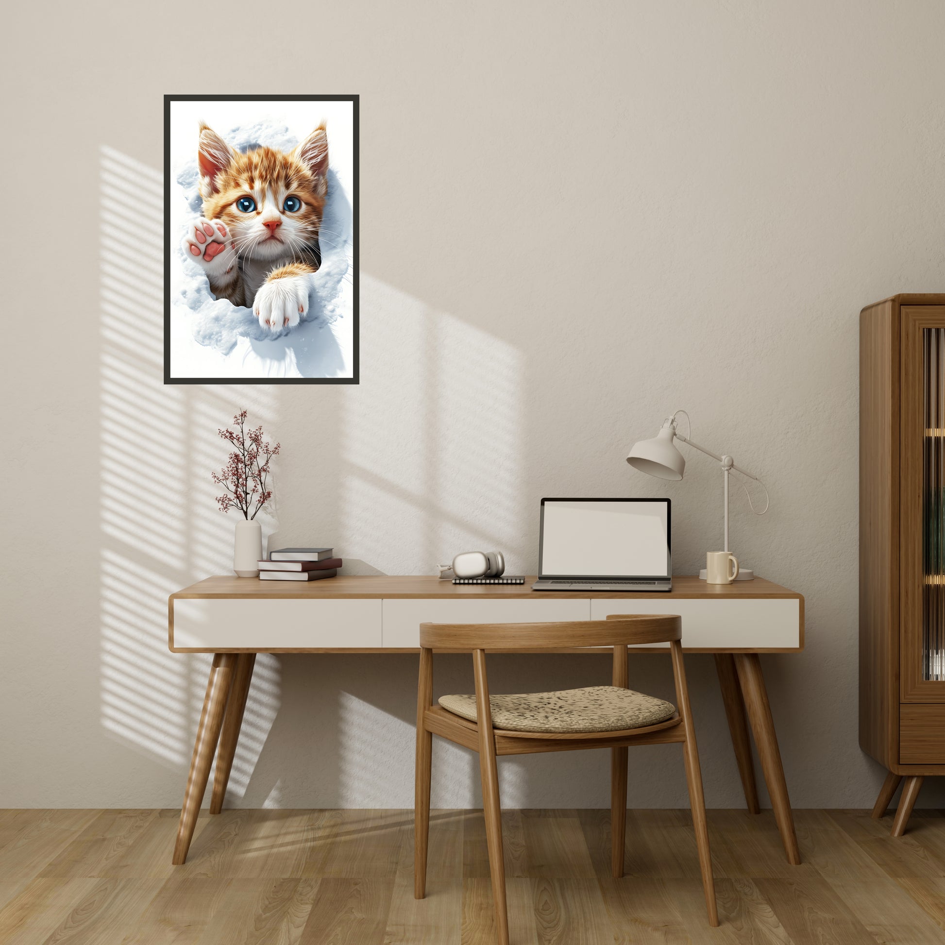- Product Overview: "Cute Kitten Peeking from Snow Wall Art"