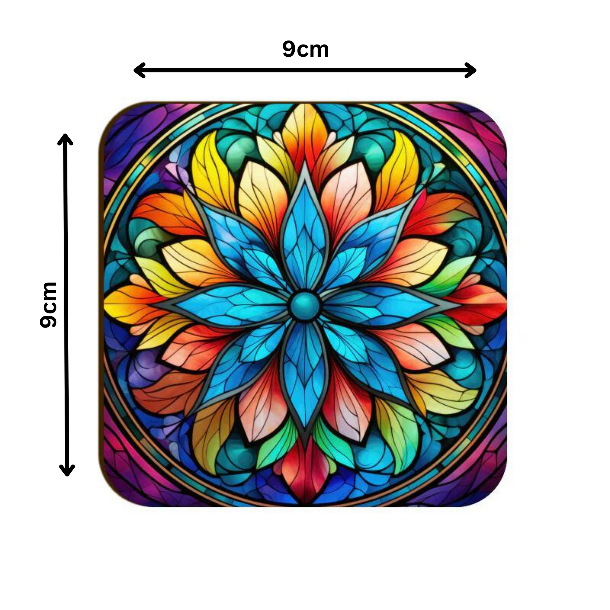 - 90 x 90 mm with rounded corners